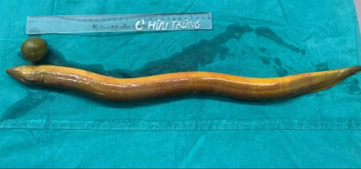 У лікарні Viet Duc рентгенівське обстеження виявило всередині пацієнта вугра довжиною 65 см, якого він засунув того ж дня, 27 липня. Знімок показав "довгу структуру", що простягалася через увесь живіт.