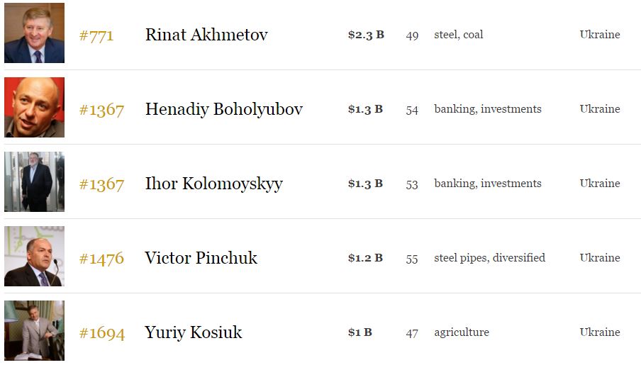 "Найбідніший" український мільярдер Юрій Косюк із $1 млрд опустився із 1638 на 1694-е місце, втративши за рік $100 млн. На 1496-му місці із $1,2 млрд опинився Віктор Пінчук, минулого ж року він посідав 1250-у сходинку.