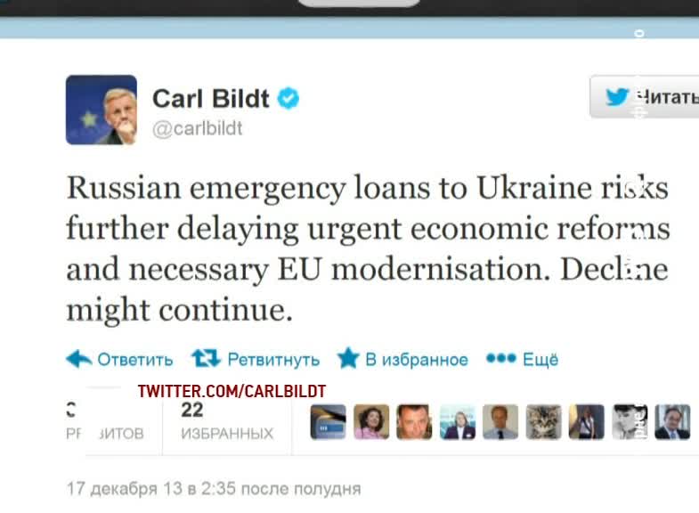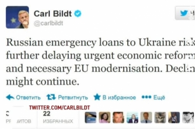 Дипломат наголосив: «Рятівні кредити Росії загрожують відтермінуванням нагальних реформ в економіці та модернізації України, яка потрібна для європейського вибору». Нагадаємо, напередодні Віктор Янукович підписав із Володимиром Путіним низку угод – зокрема, й про виділення 15 мільярдів доларів для підтримки українського бюджету.