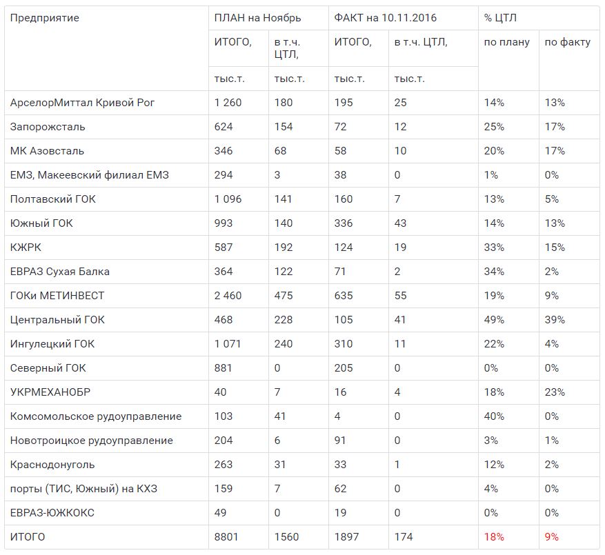 "Підприємства ГМК не сприймають корупційний підхід і вимагають рівних умов розподілу піввагонів для всіх компаній на рівні 30% від потреб. Представники галузі мають намір продовжувати пильно стежити за виконанням планів відвантаження вагонами ЦТЛ – наступного разу аналіз задоволення заявок ГМК з боку ЦТЛ буде оприлюднений за підсумками 2-ої декади листопада", – наголошується у повідомленні.