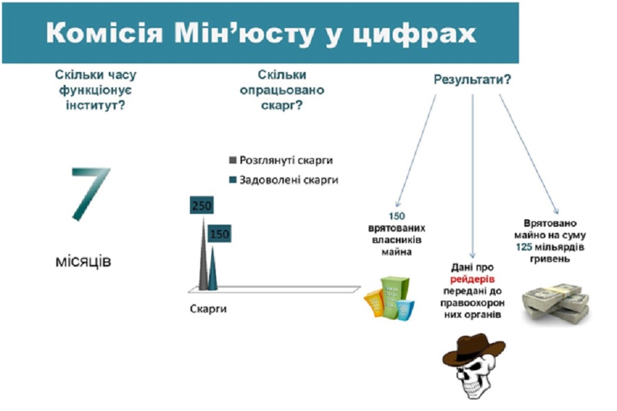 Загалом з початку року Мін’юст врятував від рейдерських зазіхань активи на суму 125 мільярдів гривень.