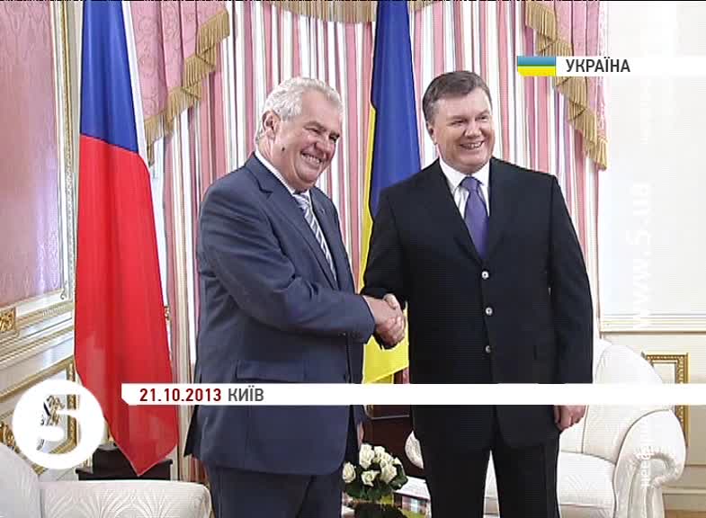 Президент Чехії перебуває в Україні з офіційним візитом. Напередодні він мав зустріч з українським колегою у Києві. Після переговорів з Віктором Януковичем віч-на-віч, Мілош Земан підтвердив, що одним із ключових моментів обговорення було питання Юлії Тимошенко. Чільники країн також обговорили програму Східного партнерства та підготовку до вільнюського саміту. На засіданні у розширеному складі делегацій пан Земан наголосив, що Чехія виступає за лібералізацію візового режиму з Україною.