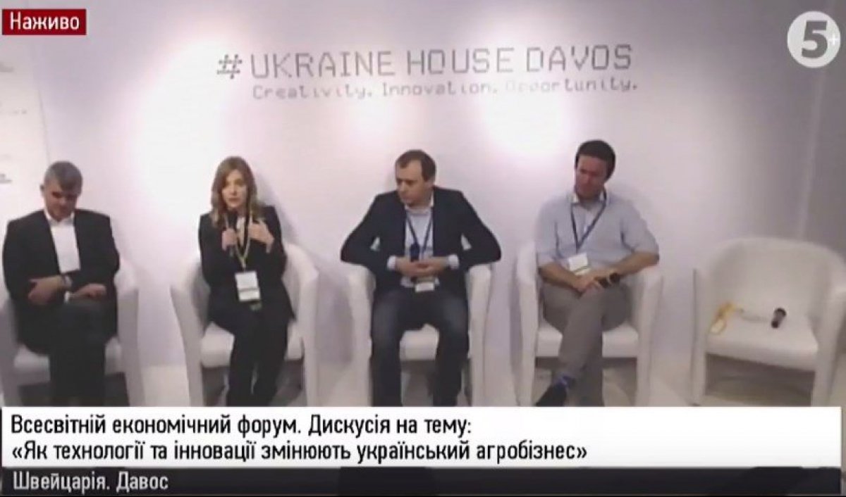 "5 канал" транслює Всесвітній економічний форум: дискусія на тему "Як технології та інновації змінюють український агробізнес". Участь у ньому бере Юлія Порошенко.