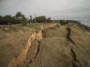 Напередодні у Фонтанці під Одесою стався масштабний зсув грунту. Унаслідок цього у прірву впала стометрова ділянка асфальтної дороги та опори ЛЕП. Масштаби завдіяної негодою шкоди можна оцінити по фото з місця пригоди.