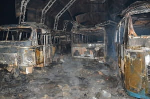 Вогонь спалахнув у металевому ангарі і миттєво поширився на площу майже 900 квадратних метрів. Вогнеборці гасили понад 4 години. Жертв та постраждалих не має, але вогнем повністю знищені 9 автобусів, 8 авто і сам ангар, де вони були припарковані.