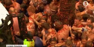 Запеклі баталії у середмісті Буньйоля починаються о десятій ранку. Тисячі містян і туристів озброюються помідорами і - щодуху жбурляють їх один в одного. За лічені хвилини центральна вулиця міста стає схожою на криваву бійню. Як це було – дивіться у фото:
