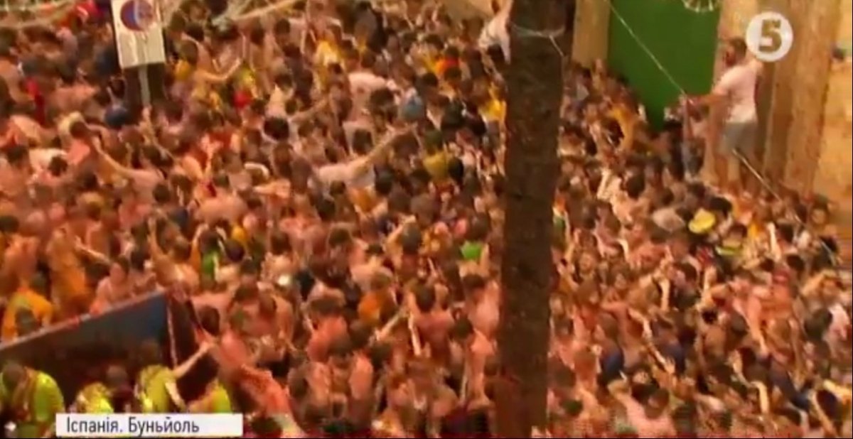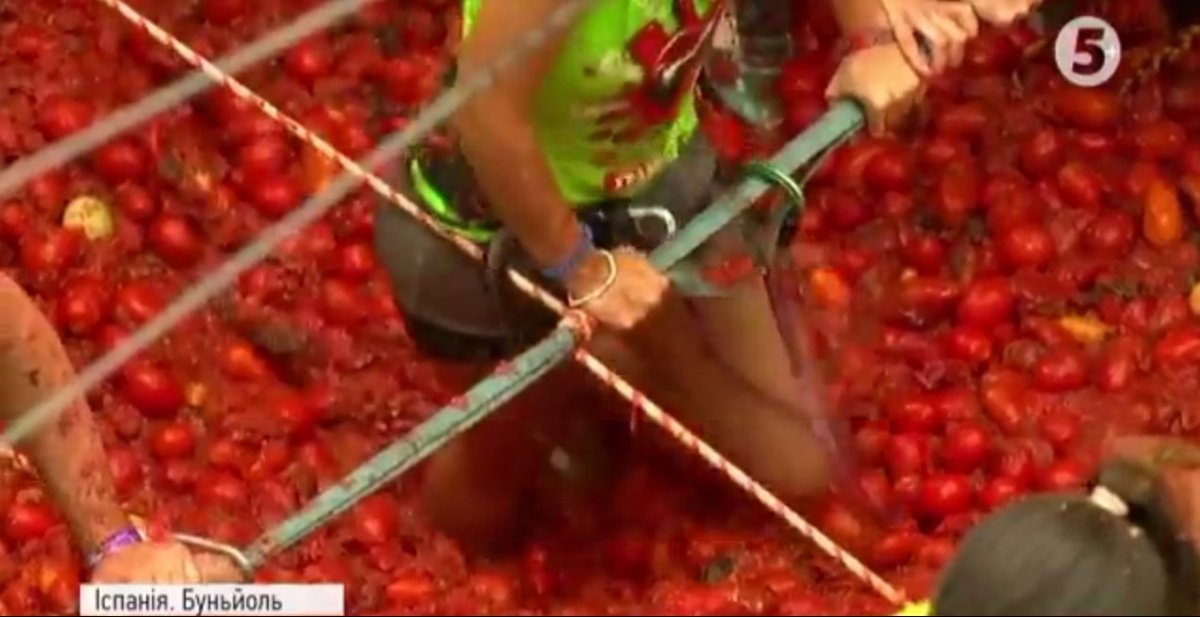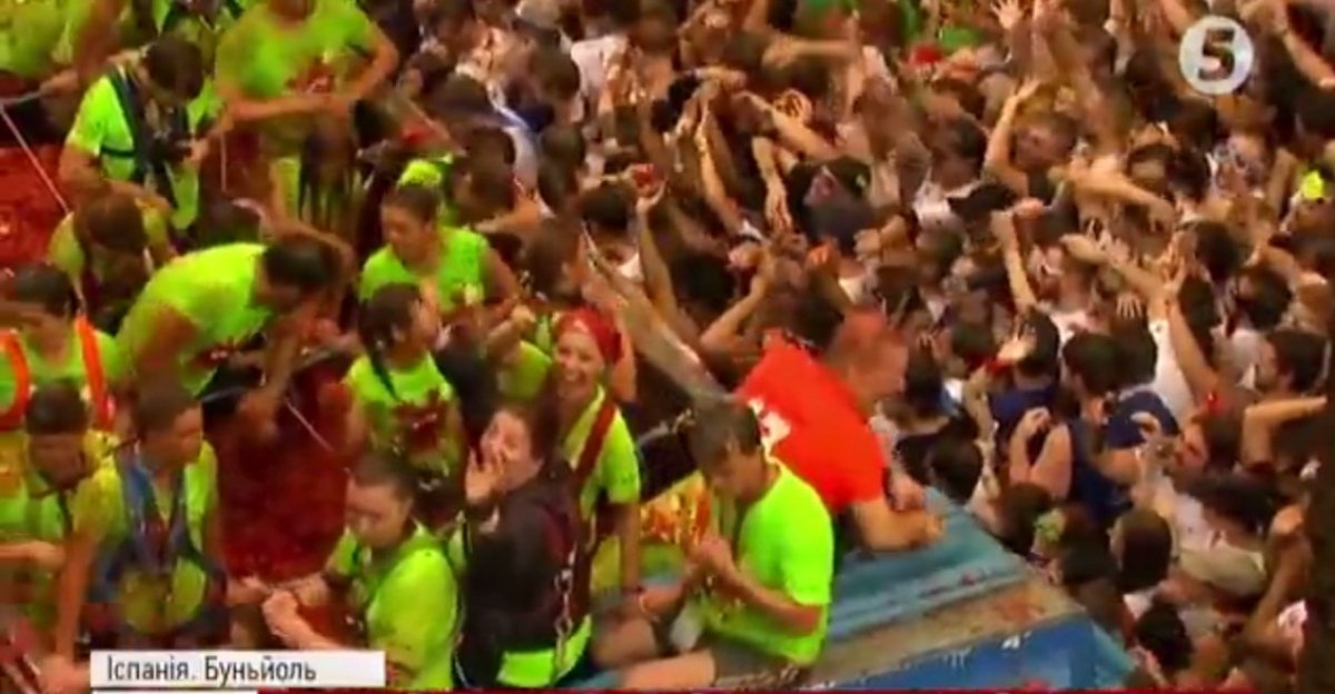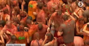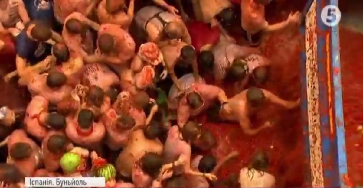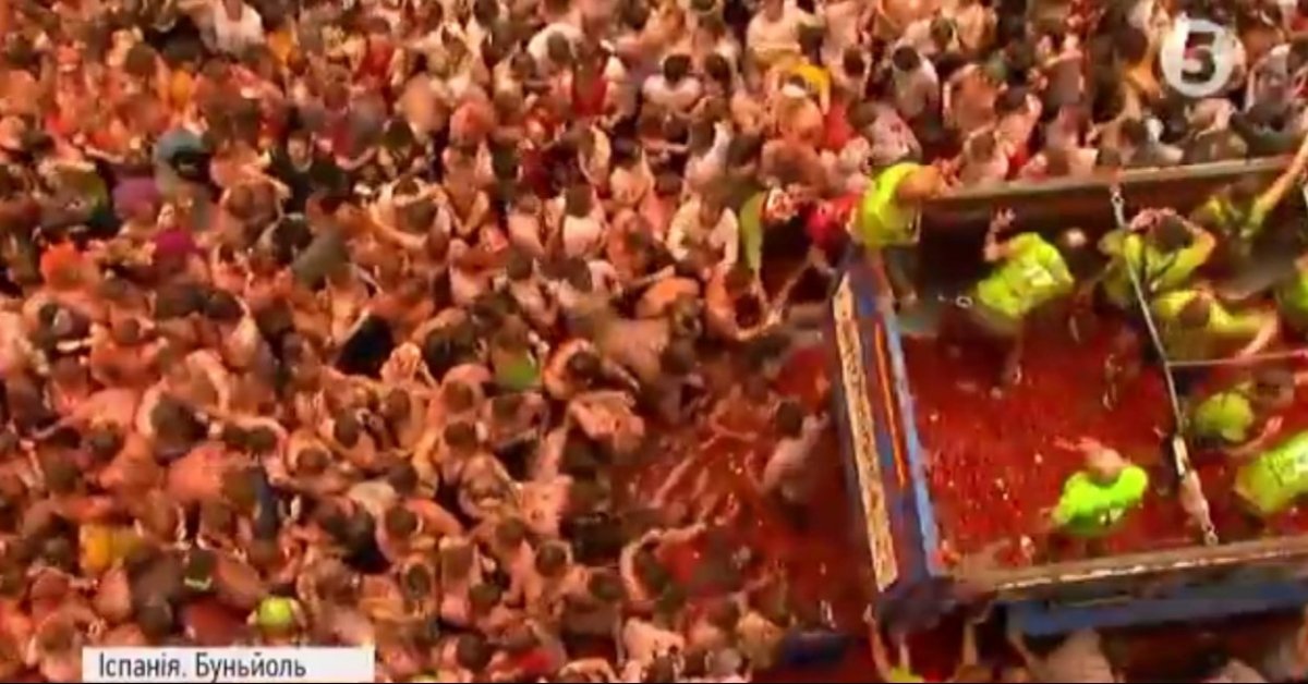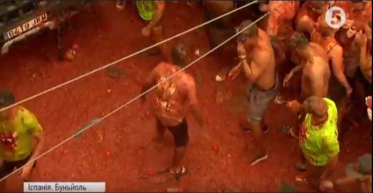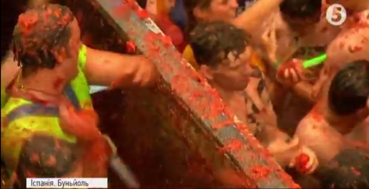 В іспанському місті Буньйоль стартував щорічний фестиваль Томатіна. Тисячі людей просто неба закидують один одного помідорами. Для баталій підготували 160 тонн томатів. Через нещодавній теракт у Барселоні фестиваль проводять за посилених заходів безпеки.