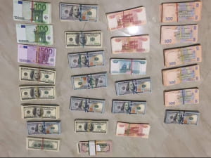 Під час обшуків у фігурантів справи вилучили підроблені посвідки на проживання, службові посвідчення, зброю, а також гроші у сумі понад 230 тисяч гривень, 134 тисяч доларів США, понад 14 тисяч євро та 1,4 мільйони російських рублів.