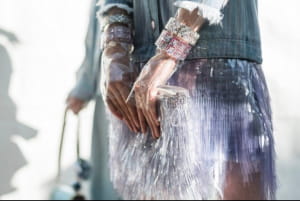 Найяскравішою деталлю шоу, що об'єднувала всіх моделей на подіумі, стали особливі чоботи різної довжини на низькому стійкому каблуці, накидки, рукавички і капелюхи з короткими полями з прозорою клейонки. Всі вони були прозорими. Незмінними при цьому залишилися твідові сукні, жакети та кольорові костюми.