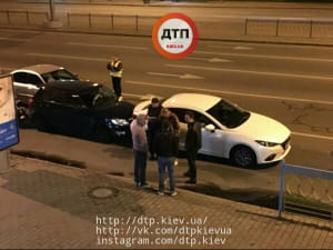 У центрі Києва, на Печерську, на бульварі Лесі Українки, сталося ДТП за участю трьох машин.