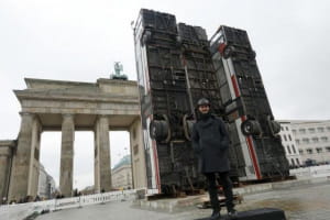 Експозиція, розміщена перед Бранденбурзькими воротами, сягає 12-ти метрів заввишки. Її автор – сирійський митець Манаф Халбуні. За його словами, інсталяція з машин – живе нагадування про барикаду на лінії оборони в Алеппо. Її також звели з автобусів у сирійській столиці в розпал війни. Минулої зими митець вже виставляв цю ж експозицію на показ у німецькому Дрездені. Тоді перевернуті автобуси спровокували протести право-радикалів. Адже, на думку активістів, інсталяція спаплюжила пам'ять про бомбардування самого Дрездена під час Другої світової. Утім жителів Берліна нестандартний витвір приємно вразив.
