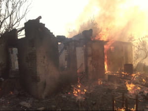 У штабі АТО показали, як ворог "дотримується" Мінських угод. Напередодні ворожі снаряди влучили у будинки мирних мешканців Зайцевого. Від обстрілів хати загорілися.