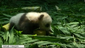 Малюка панди вперше показали у сафарі-парку китайської провінції Гуандун. Це хлопчик на ім'я Лун Цзай, йому виповнився один місяць.
