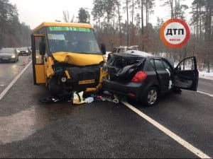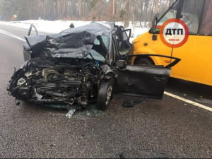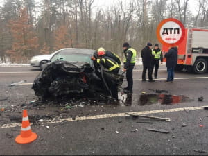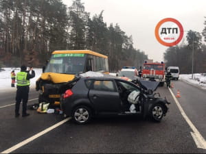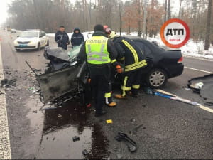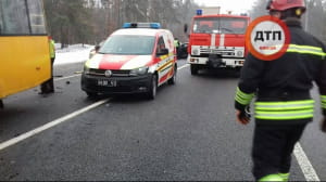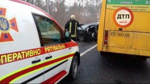 На Гостомельській трасі під Києвом зіткнулися Mitsubishi, Nissan і маршрутка. Повідомляється про одного загиблого і потерпілих. Про це на своїй сторінці у Facebook повідомляє dtp.kiev.ua.