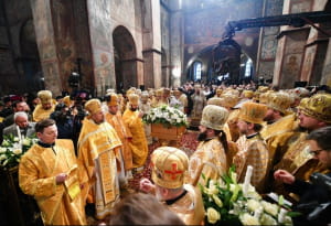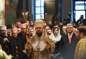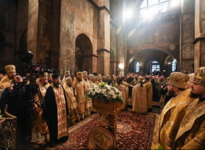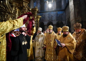 Інтронізація Митрополита Київського і всієї України Епіфанія відбулася у Соборі Святої Софії. Церемонія тривала під час Божественної літургії. Про таке повідомляє "5 канал".
