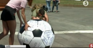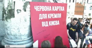 Вчора, 2 червня, на Майдані Незалежності в Києві зібралась найбільша за час голодування Олега Сенцова акція на підтримку українських заручників режиму Путіна. Люди тримали в руках плакати #FreeSentsov та закликали бойкотувати Чемпіонат світу з футболу, що відбудеться незабаром в Росії. Кремлю пікетувальники вручили червону картку. На ній кожен охочий міг написати щось від себе. Інший подарунок – футбольний м'яч з іменами усіх політв'язнів Кремля.