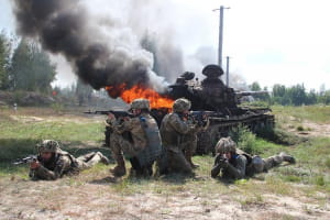 Наразі триває другий етап навчання резервістів а саме підготовка до ведення рейдових дій у складі роти. Про це повідомляє Генеральний штаб ЗСУ у Facebook.