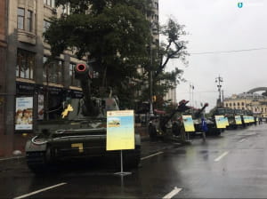 70 одиниць військової техніки можна побачити на Хрещатику – виставка "Міць нескорених" присвячена 26-й річниці незалежності України. Серед представлених зразків – техніка Збройних сил, Національної гвардії та Державної прикордонної служби, передає "5 канал".