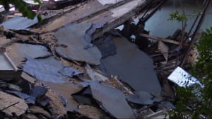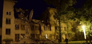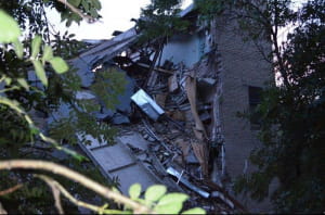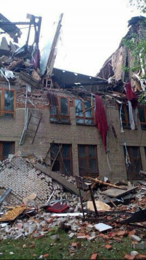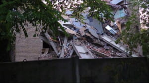 У центрі Донецька на бульварі Шевченка обвалилася будівля колишнього національного університету економіки і торгівлі. Про це повідомляють жителі міста у соціальних мережах. Спочатку повідомлялося, що обвалення будівлі відбулося в результаті підмиву стіни через сильні дощі. Пізніше так званий "міністр МНС ДНР" Олексій Кострубицький заявив, що причиною обвалення нібито було спрацьовування вибухового пристрою. В результаті інциденту є одна постраждала – жінка-сторож, яка була госпіталізована.
