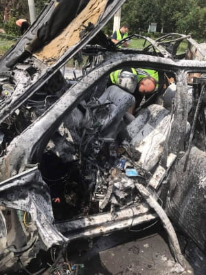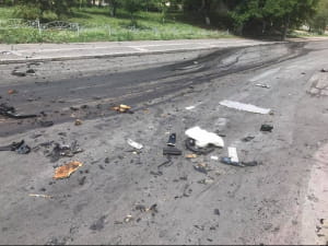 В столиці під час руху вибухнув Mercedes, частини авто розлетілись на 100 метрів – фоторепортаж