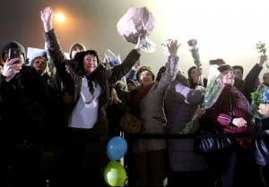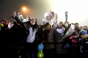 Літак прилетів близько 00:20. І ось – вихід. Швидка промова Порошенка, а потім обійми. З тими кого не бачили по кілька років. Що говорити. На таке краще дивитися.