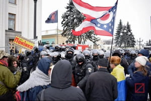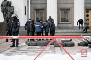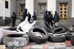 Під стінами зібралися близько двох сотень активістів. Згодом рушили на вулицю Хрещатик, де перекрили рух транспорту.