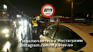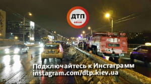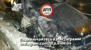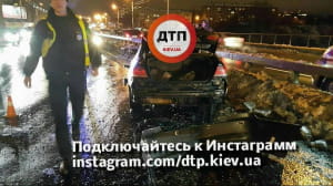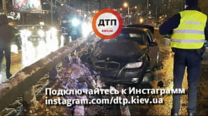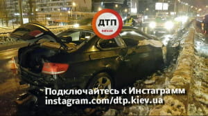 "Водій автомобіля BMW, №АІ1733ЕА, рухаючись на високій швидкості, не впорався з керуванням і врізався у відбійник. Відбійник спрацював, як трамплін - машина пролетіла в повітрі кілька десятків метрів. При польоті пасажир BMW випав із салону, впав на асфальт і загинув на місці. Водій з місця пригоди зник", - йдеться в повідомленні.