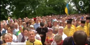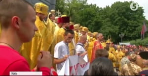 В Україні відзначають День Хрещення Київської Русі. До столиці з усієї країни приїхали тисячі віряни Української православної церкви Київського патріархату. Після літургії у Володимирському соборі хресною ходою вони вирушили до пам'ятника князю Володимиру. За перебігом стежить кореспондент "5 каналу" Леся Головата.
