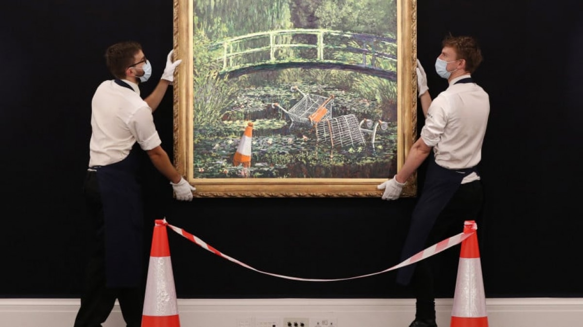 Це вдвічі більше, ніж планували вторгувати. Картина має назву "Покажи мені Моне". Бенксі створив її 15 років тому за мотивами "Японського містка" французького художника Клода Моне.