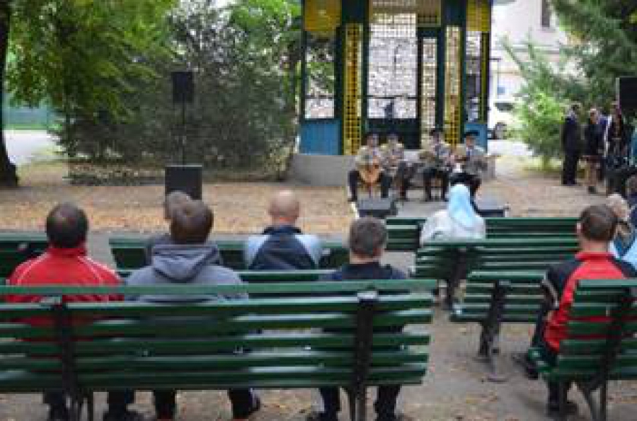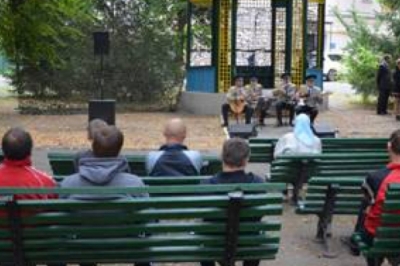 Аби навіть важкопоранені, не виходячи з палат, могли долучитися до концерту, академісти розгорнули прямо у дворі госпіталю імпровізовану сцену, з якої лунали відомі українські пісні, щирі слова вдячності та побажання швидкого одужання.