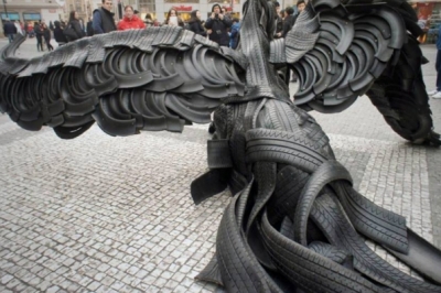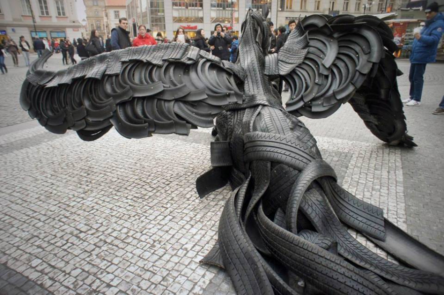 Як повідомляє користувач Igor Melika, на Вацлавській площі, що в столиці Чехії, з'явилася скульптура Пегаса з використаних автомобільних шин. Автор скульптури молодий чеський митець Ондржей Худек (Ondřej Hudec).