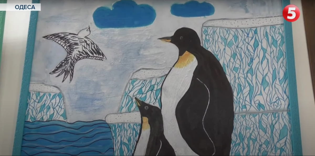 "Ми спілкувалися з ними по програмі онлайн "зум", вони показували станції "Академік Вернадський". Я вибрав таку роботу саме тому, що я люблю малювати всяку техніку, гаражі, літаки, це якраз мені на тему, на моїй роботі зображено криголам "Ноосфера" і зверху станція "Академік Вернадський", – розповів переселенець із Миколаєва, учасник науково-творчого проєкту Тимофій Пінов.