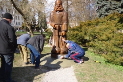 "У Чернігові встановлено перший пам'ятник бійцеві самооборони Києва! Як відомо, билинний богатир Ілля Муромець родом із селища Карачев , біля міста Моровійськ на Чернігівщині. Тому пам'ятник розташований недалеко від Червоної площі Чернігова поряд з П'ятницької церквою і практично навпроти Чернігівського міського відділу міліції. Боєць самооборони Ілля Муромець як би натякає , що наглядає за дотриманням законності в лавах правоохоронних органів. Шолом , "бронік" і булава –при ньому , як і належить будь-кому, хто захищав Майдан, Київ, Україну", - написав Андрій Кудабєков.
