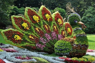 Фахівці Дарницького району створили з квітів Жінку-Берегиню, на яку їх надихнув монумент Незалежності на столичному Майдані. Також серед експозицій – Квітка Єдності, Земна куля, Гайдамаки, Янгол-Охоронець, Голуб Миру тощо.