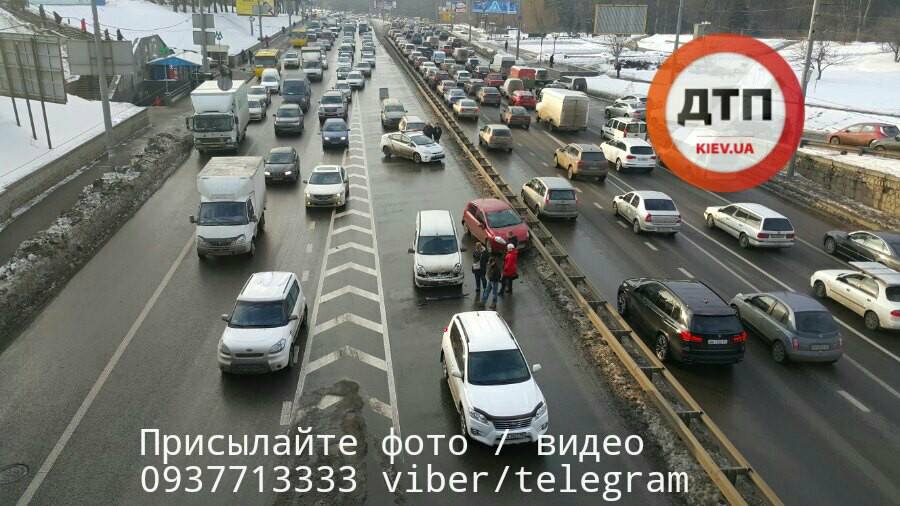 Сьогодні, 17 лютого, у Києві на проспекті Перемоги сталася масштабна дорожньо-транспортна пригода з участю п'яти автомобілів. Про це повідомляє портал dtp.kiev.ua.