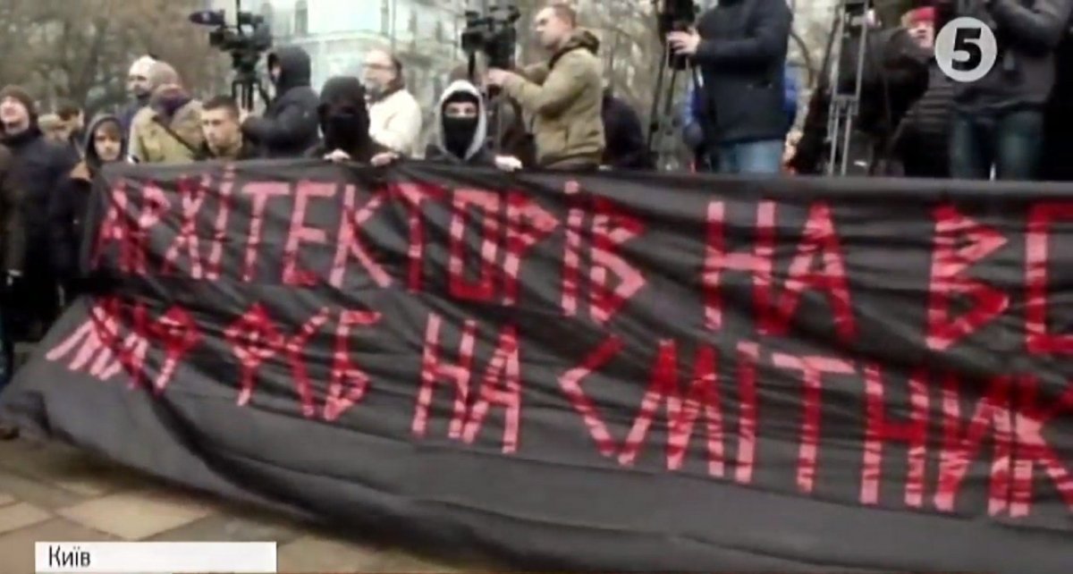 Конфлікт під час акції у столиці. До сотні активістів вийшли на підтримку заарештованих архітекторів Олександра Горбаня та Олексія Шемотюка, яких підозрюють у спробі підпалу у ніч на 25 січня релігійної споруди Української православної церкви Московського патріархату. Водночас, кілька сотень вірян прийшли на службу, що відбувається у храмі УПЦ МП. Між групами людей і виник конфлікт. На місці події перебуває кореспондент "5 каналу" Сергій Барбу.