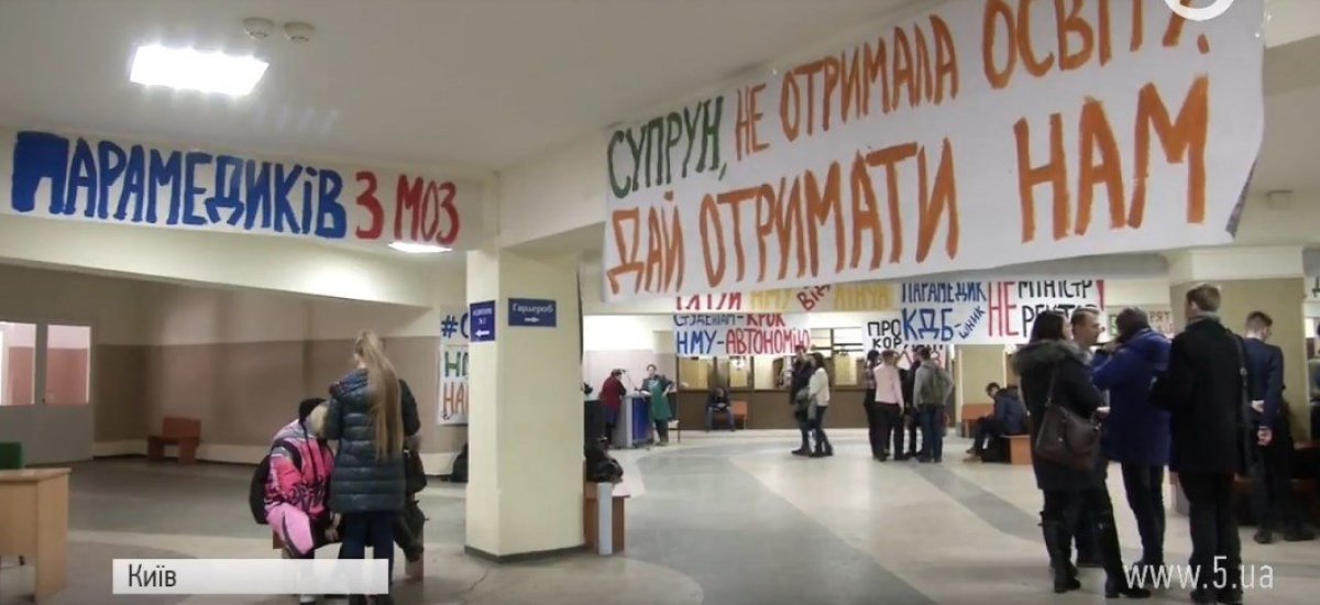 Повідомлення про страйк студентам стали розсилати ще в неділю, на шостий день після відсторонення ректора. Катерину Амосову, яка дії МОЗ назвала спробою тиску, підтримала частина студентів.