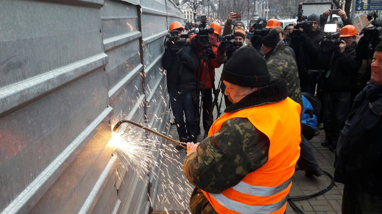 Повідомляється, що роботи розпочалися з перешкодою: паркан на вході до будівлі був зачинений, тому довелося застосувати газобалонне обладнання.