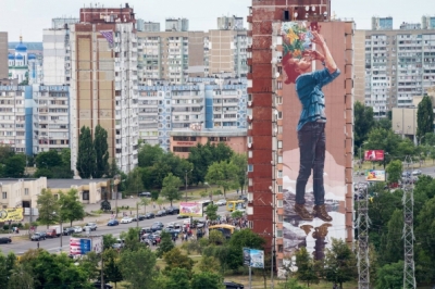 У рамках фестивалю Mural Social Club всесвітньо відомий австралійський вуличний художник Fintan Magee прикрасив 17-поверхову будівлю столиці масштабним муралом із зображенням дівчини з квітами. Нова фреска знаходиться за адресою Маяковського, 2/1. Про це йдеться у повідомленні Mural Social Club у Facebook.