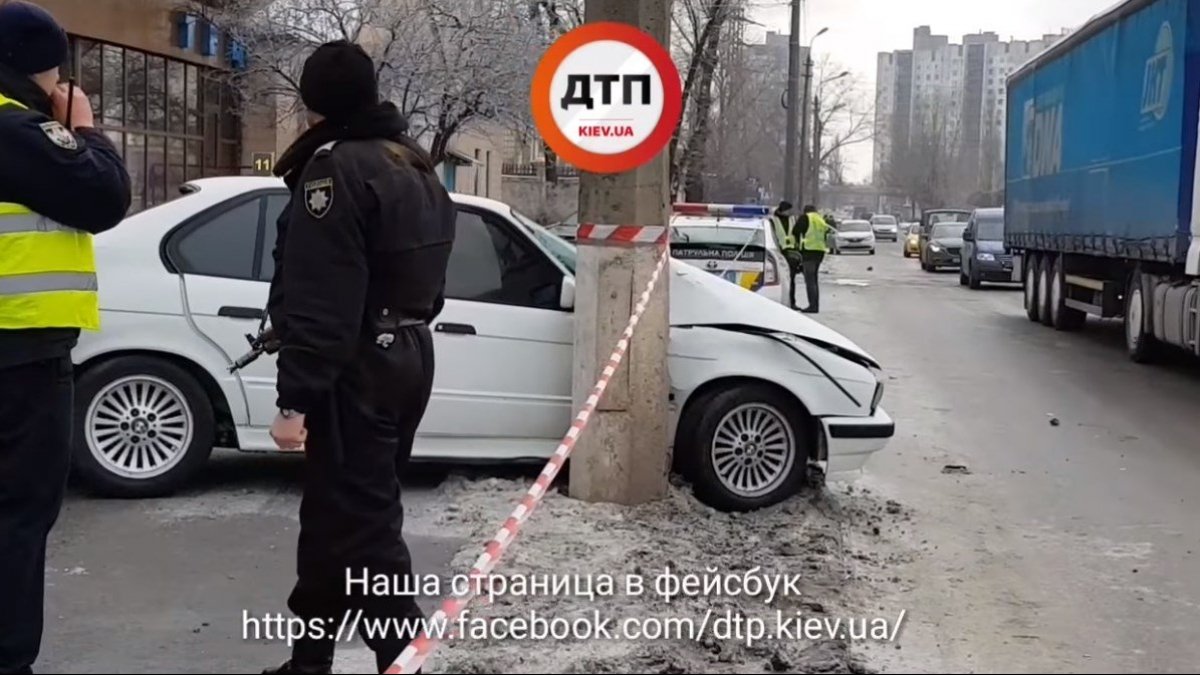 Як з'ясувалося, аварія сталася у Дніпровському районі міста по вулиці Хацкевича. За попередніми даними, водій був тверезий. Його машину занесло через ожеледицю на дорозі. Перед тим, як врізатися в стовп, BMW зачепив ще один автомобіль.