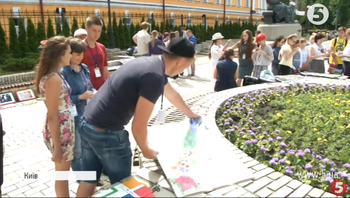 Діти з прифронтових міст Донеччини та Луганщини приїхали до столиці, щоб розповісти одноліткам та дорослим про дитинство в умовах війни. У середмісті вони презентували плакати, малюнки та світлини про життя та прагнення дітей Донбасу.