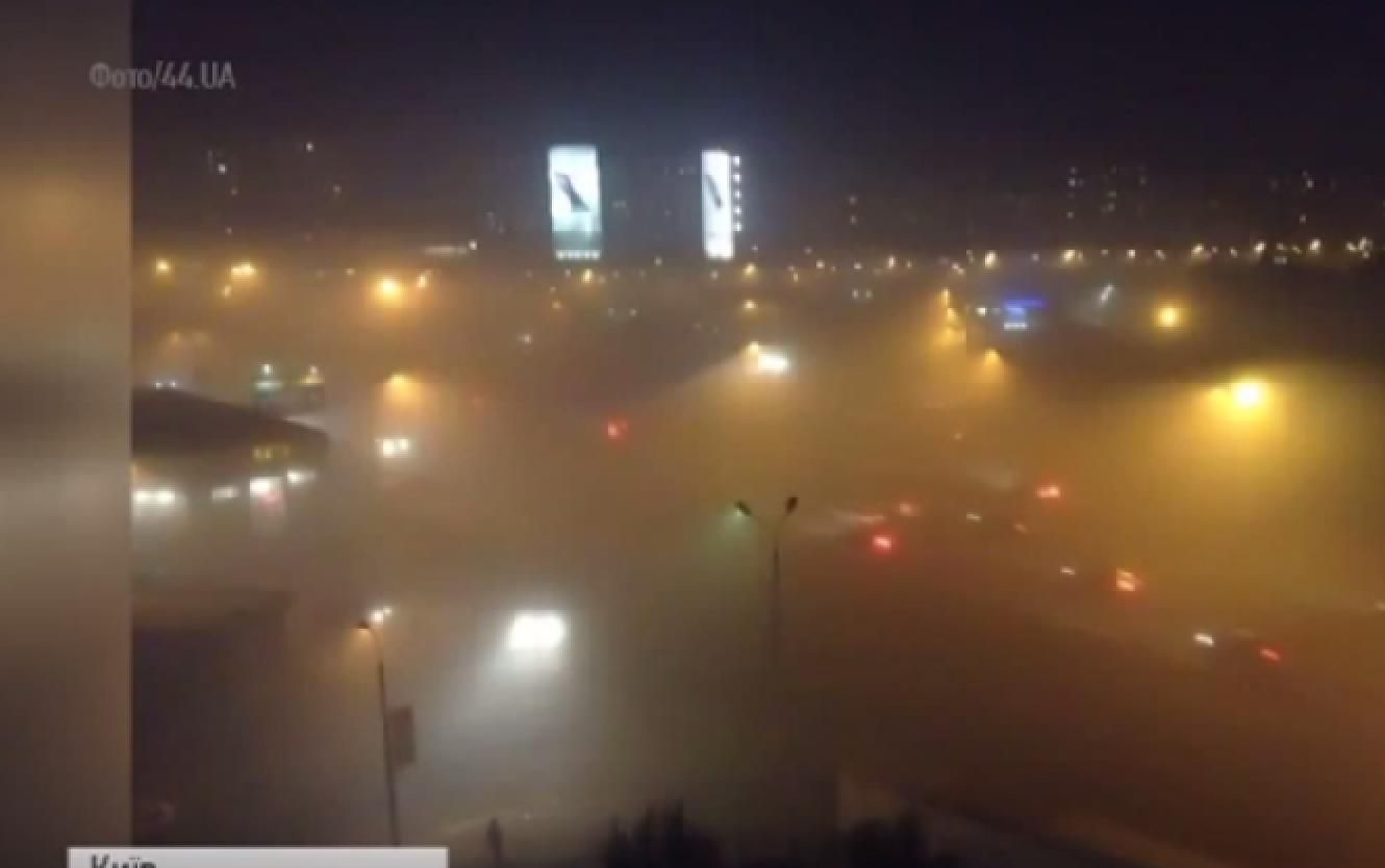У Києві знову смог. За вікнами "5 каналу" видимість буквально нульова. Ліхтар, який горить за кілька метрів, можна хіба що здагадатися, що він там є. Також у повітрі відчутний незрозумілий запах.