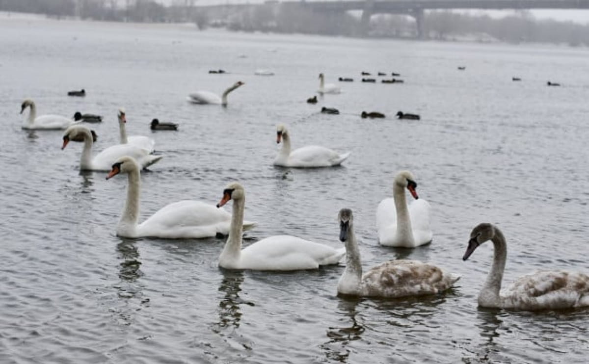 Морозний ранок на столичній Оболоні. Біля берега Дніпра збираються люди – подивитися на пернатих. На зимівлю у парк Наталка лебеді прилітають уже кілька років поспіль. Цьогоріч їх тут близько сорока.