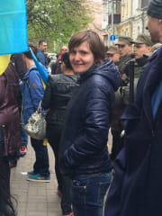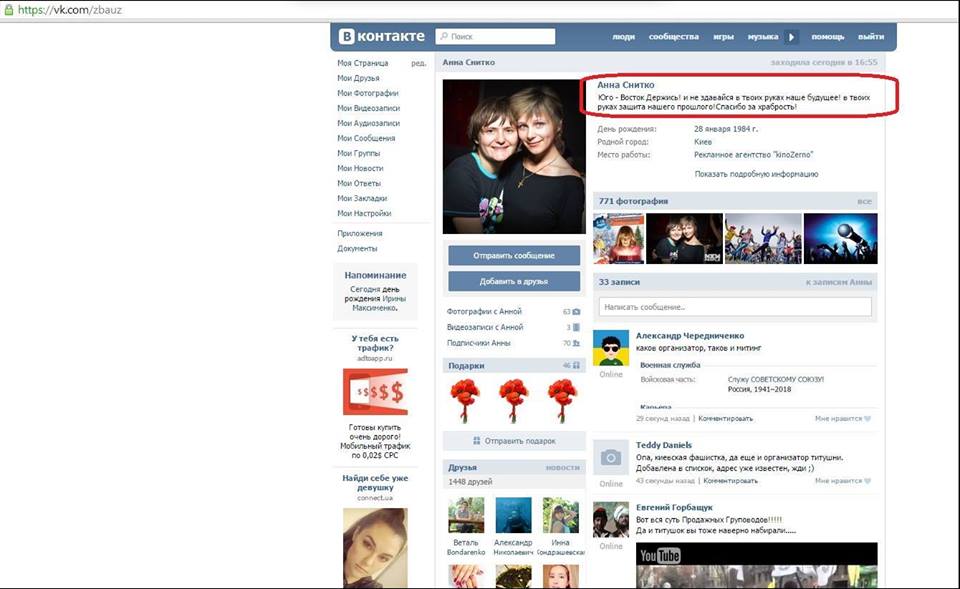 Нижче пропонуємо вашій увазі фото Анни Снітко із сьогоднішнього мітингу та екранну копію її сторінки у соцмережі.