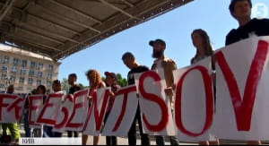 Навколо сцени – кілька десятків небайдужих із плакатами з хештегом "FreeStntsov". Однак набагато більше людей відпочивають біля фонтана на майдані Незалежності у кількох десятках кроків від акції на підтримку Сенцова, який голодує в Росії. І дехто з них зовсім не хоче псувати собі настрій, згадуючи про українського режисера.
