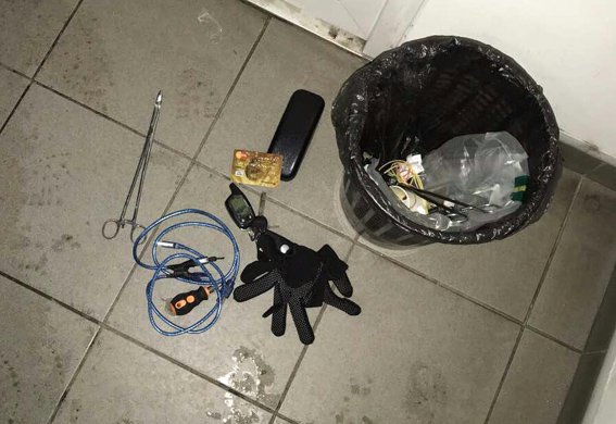 Як повідомляється, злодіїв було затримано безпосередньо на місці вчинення ними злочину – біля одного зі столичних банкоматів по вулиці Порика. При огляді місця події біля банкомата виявлено та вилучено металеві ножиці, викрутку і металевий дріт з флеш-накопичувачем зі шкідливим програмним забезпеченням на ньому.