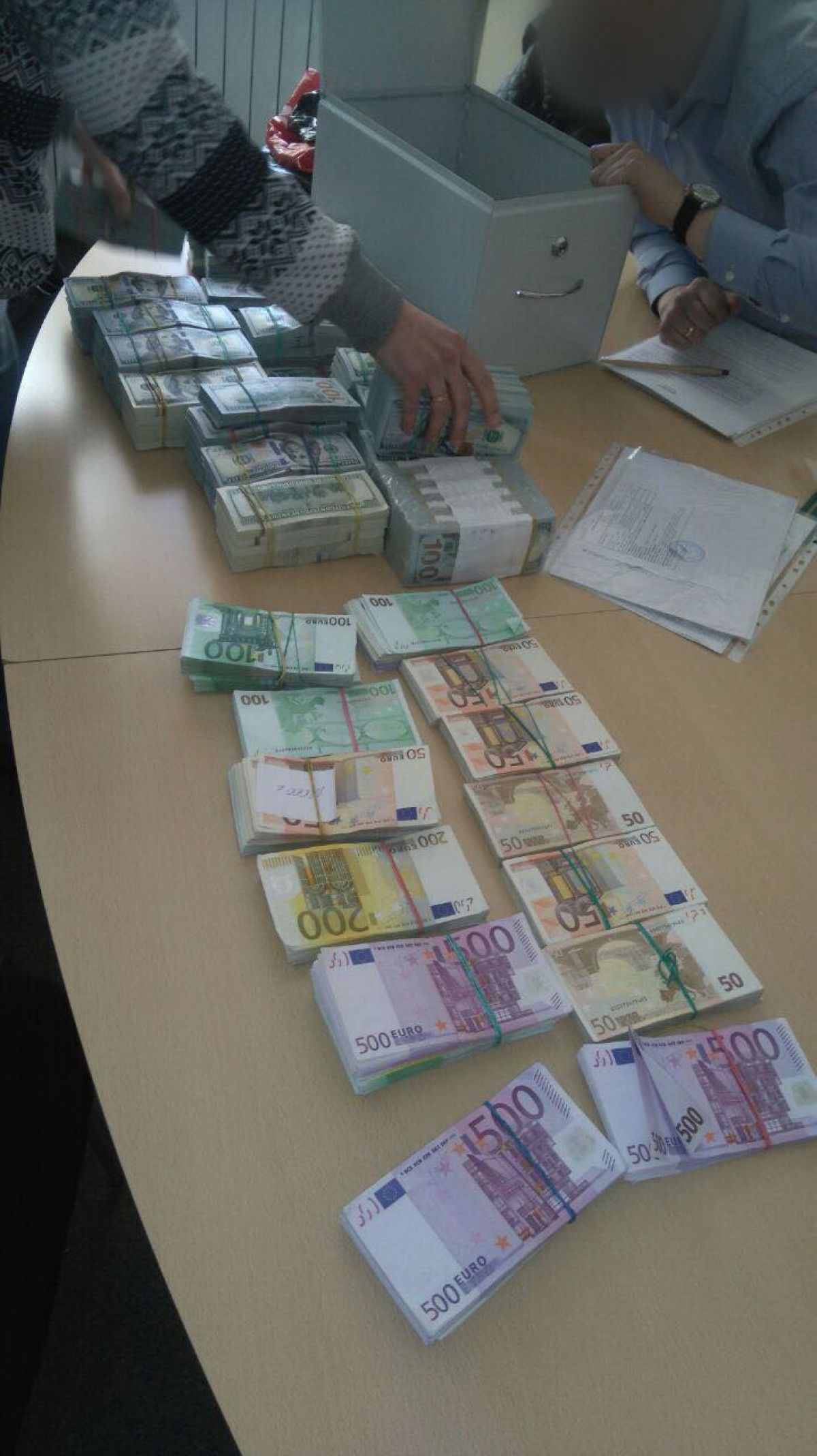 Під час обшуків за місцем проживання зловмисників та у двох банківських скриньках організатора правоохоронці вилучили 1 мільйон 622 тисячі доларів США, 3 мільйони 145 тисяч гривень, 258 тисяч євро, 55 тисяч російських рублів та 40 грамів золота у злитках.