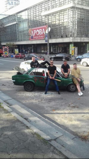 На відеоролику можна побачити, що хлопці особливо не шкодують автомобіль. Хтось б’є битою, хтось – скаче по багажнику. Інші в цей час розбивають скло та руйнують її бампер.