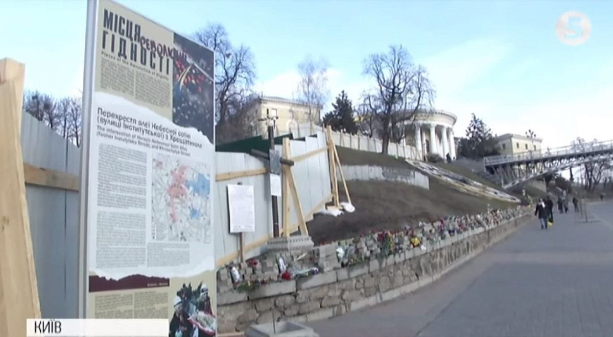 Такими табличками позначають місця, де загинули протестувальники у найкривавіший день Майдану – 20 лютого 2014-го. Щоби ГПУ могла завершити слідчий експеримент, тут не можна змінювати ландшафт. Відтак, у жовтні торік на цю земельну ділянку наклали арешт.