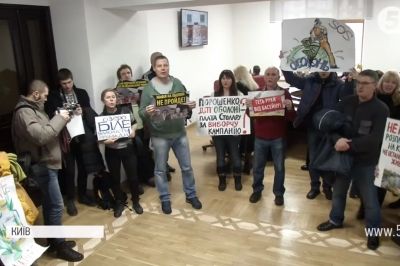 Зняти це питання з порядку денного вимагали свободівці. Пояснюють: голосування без присутності мера Києва неможливе. Фракція геть заблокувала трибуну. Після десятихвилинної перерви – розгляд проекту таки перенесли на наступний тиждень.